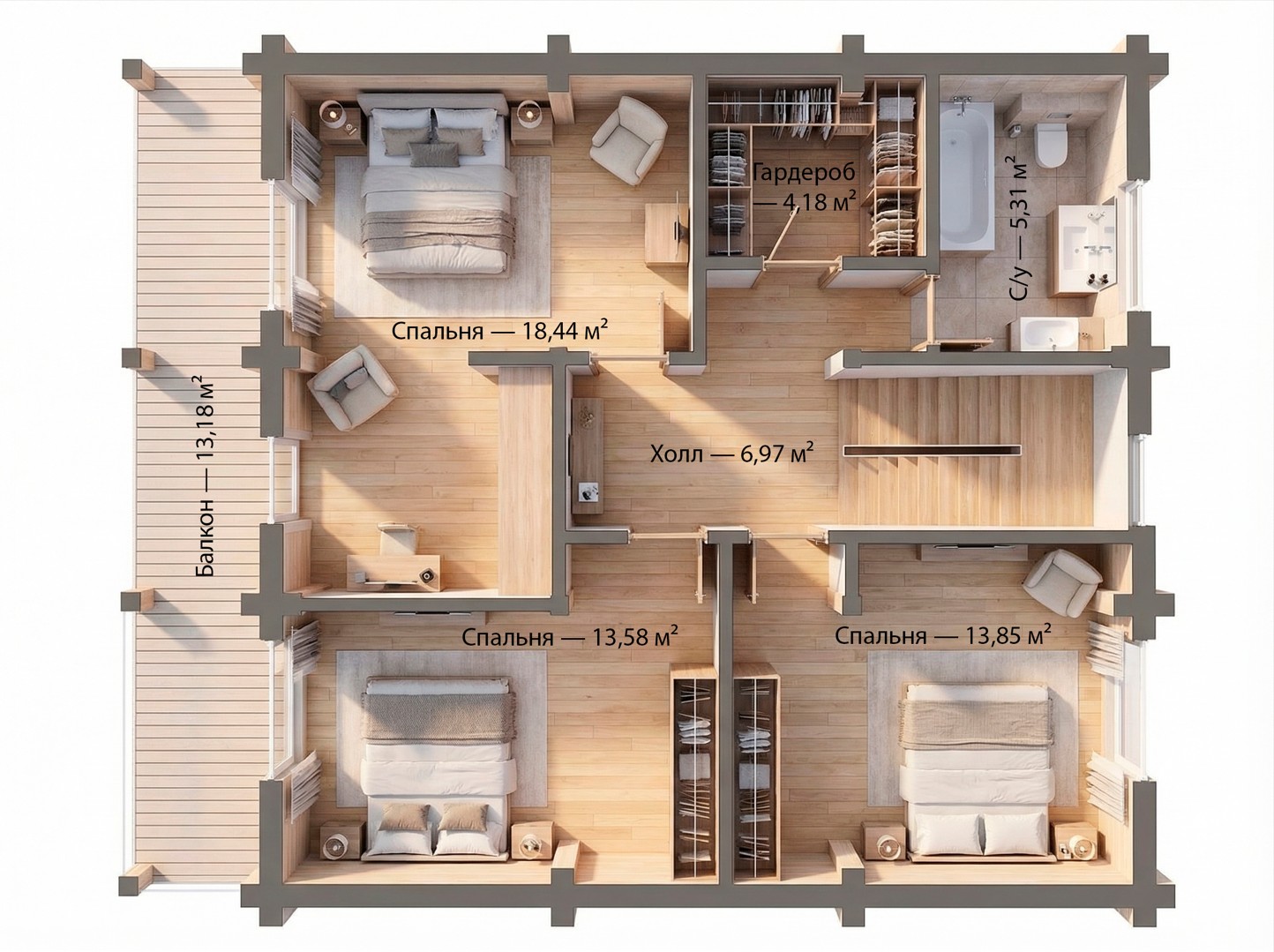 Проект уютного двухэтажного дома Образцово, общей площадью 158 м² сочетает в себе традиционный стиль и оптимальное внутреннее наполнение. Внутренняя планировка дома вмещает в себя кухню-гостиную, которая станет идеальным местом для семейных обедов и вечеров в кругу друзей, четыре просторные спальни и два сан.узла.