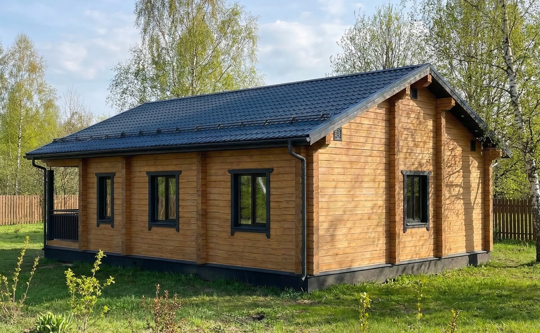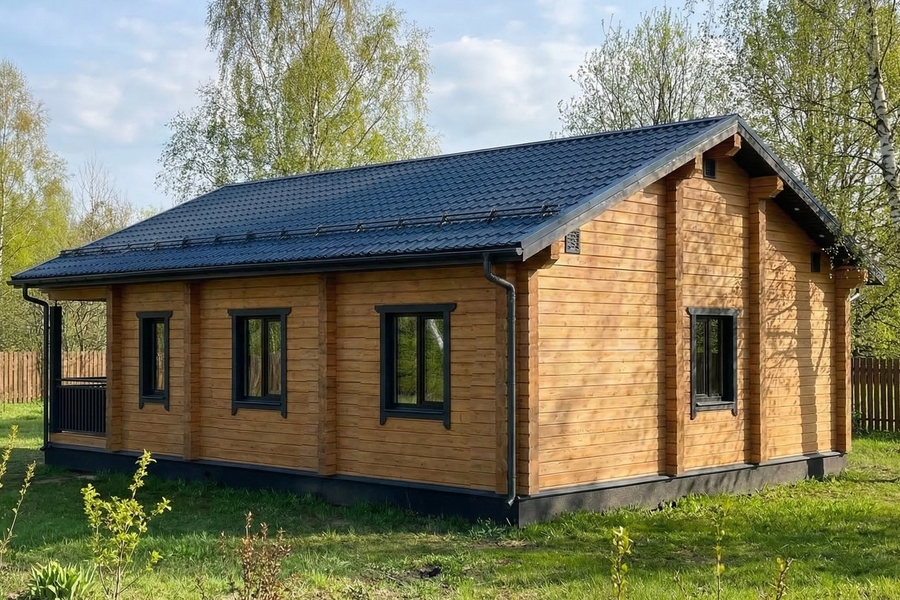 - Стропильная система из доски камерной сушки (сосна) 50х200мм, обрешетка из бруска 50х50мм, контробрешетка и внутренняя обрешеткам из доски 25х100мм.