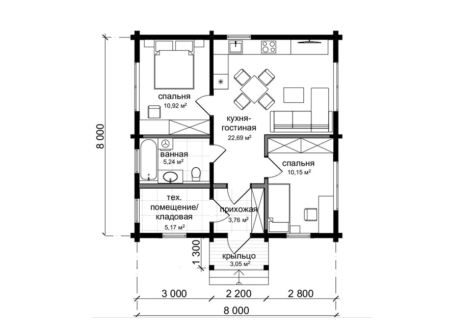 Комплектация ПРЕДЧИСТОВАЯ Сечение бруса 160х185 мм |